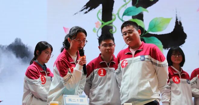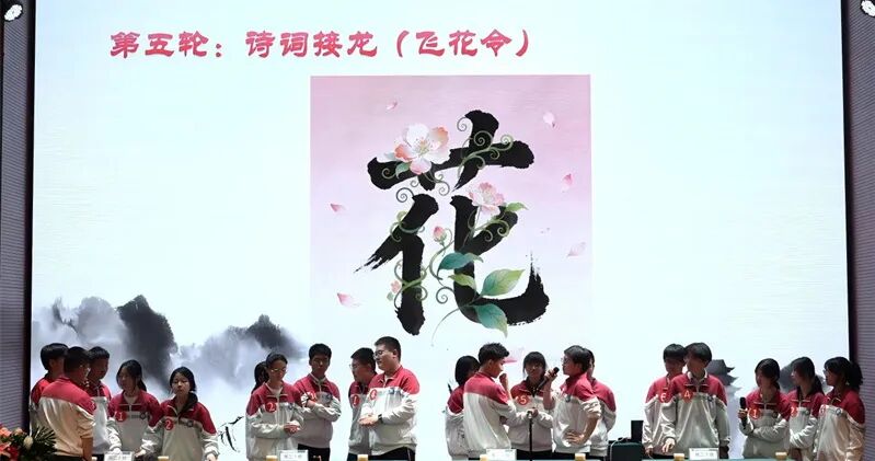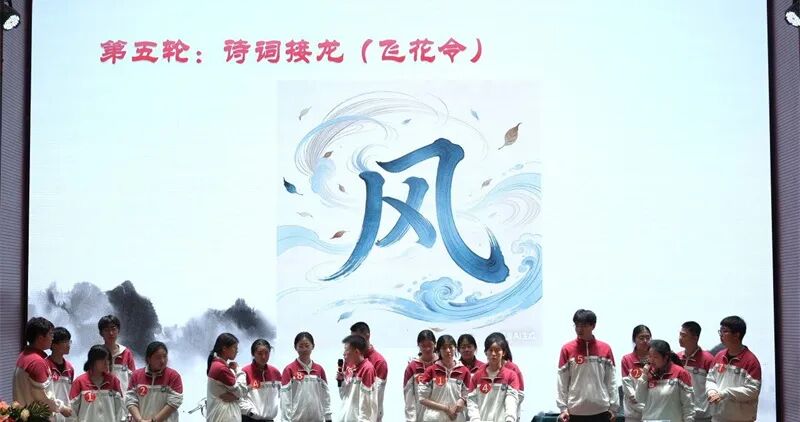 本次诗词大会聚焦高二年级学生,精心设置五个竞赛环节,层层递进、妙趣横生。前三个环节为必答题,涵盖名句找茬、诗词背诵、诗意理解,既考验学子们对诗词细节的精准把握,也检验着大家的积累与沉淀;第四轮抢答题环节,节奏陡然加快,选手们反应敏捷、抢答踊跃,现场气氛瞬间升温;最令人称道的当属第五轮飞花令,选手们才思敏捷、妙语连珠,一句句经典诗词脱口而出,眉眼间尽显少年意气,报告厅内诗意氤氲,掌声、喝彩声此起彼伏,将活动氛围推向高潮。