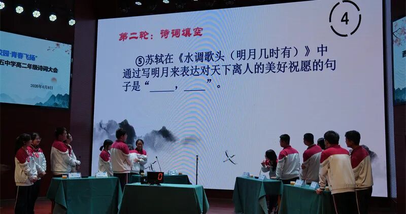 春和景明,诗韵飘香。2026年4月8日下午,西安市第八十五中学“诗意校园 青春飞扬”诗词大会在图书楼报告厅启幕,一场兼具知识性与趣味性的诗词盛宴,在高二年级学子的热情参与中拉开帷幕。