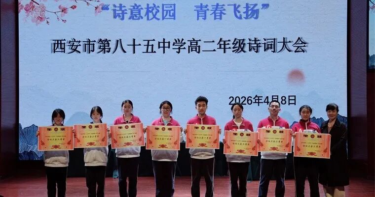 作为西安市第八十五中学传统学科特色活动,本次诗词大会意义深远。活动不仅为更高一级诗词大赛选拔了优秀人才,更以诗为媒,有效促进了学校学生良好读书习惯的养成,厚植了校园诵读风气,吸引更多学子走进诗词经典、记诵诗词华章,在校园中营造出“人人读诗词、个个诵经典”的向上风貌。