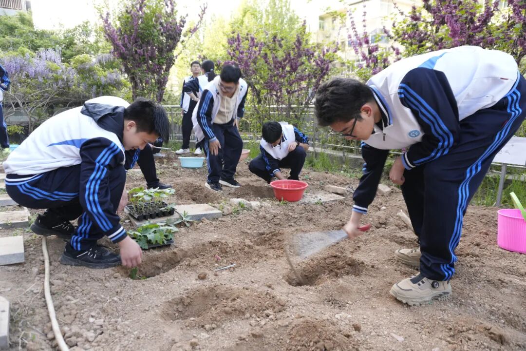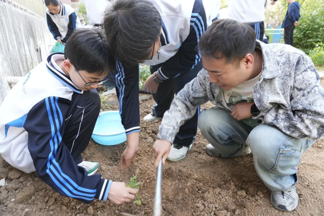 翻土、挖坑、放苗、培土、浇水……同学们分工合作,配合默契。平日里握惯了笔杆的手,此时拿起了小铲子、水桶,虽然动作略显生疏,但每个人都格外认真投入。