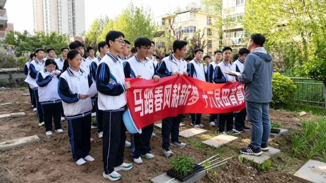 清明时节雨初歇,正是躬耕好时光。2026年4月9日下午,西安市五环中学校园东北角开辟的劳动实践基地里热闹非凡,高一、高二年级16个班的师生代表齐聚田间,共同参加蔬菜种植劳动实践启动仪式。在学校政教处的精心组织下,同学们将在这片充满希望的土地上,亲手种下春天的第一批菜苗,开启一段与土地、与劳动、与成长相伴的实践旅程。