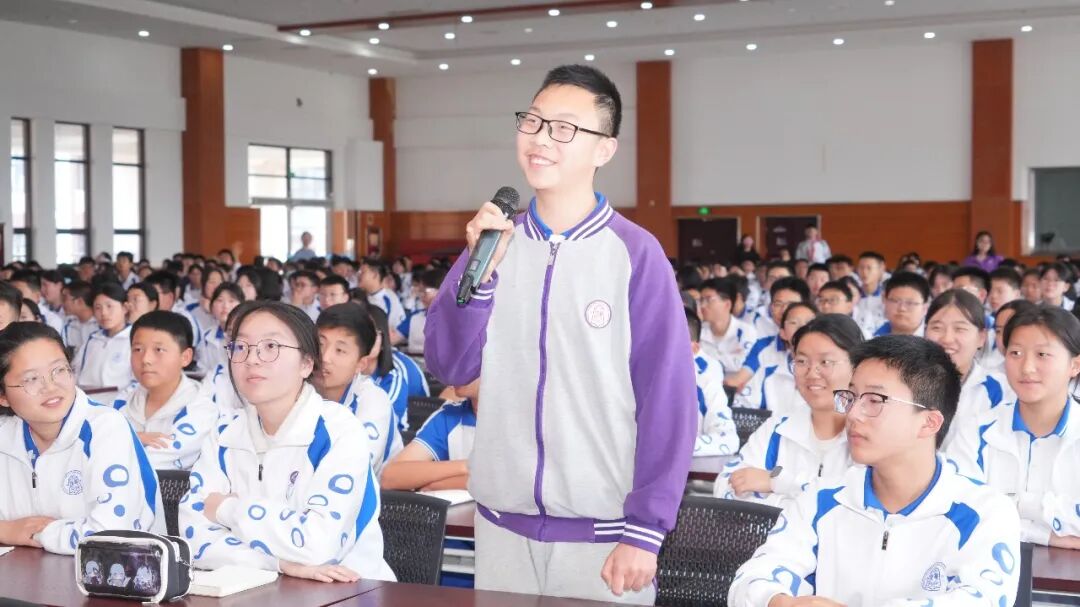 互动答题环节,同学们踊跃举手、积极抢答,现场气氛热烈高涨,答对的同学收获精美纪念品,喜悦之情溢于言表。