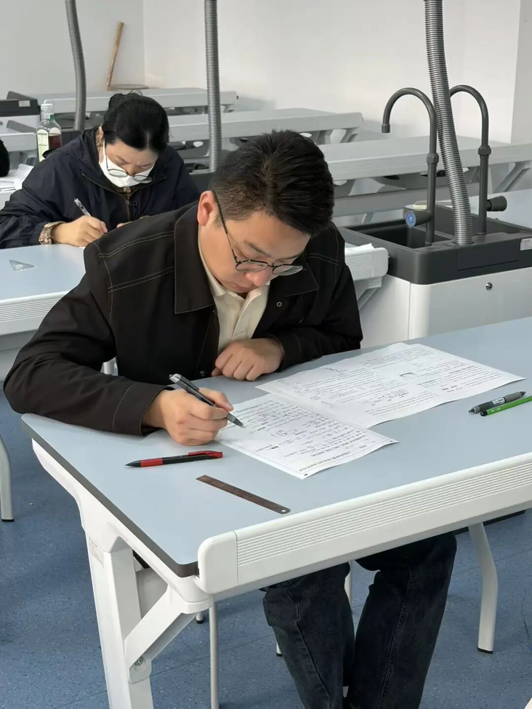 本次活动由教研室统筹安排,成立了考务工作组与阅卷评审组,全方位保障活动规范、有序开展。不同于日常教研中“碎片化”的刷题与“剖析式”的精讲,本次活动打破常规,采用标准化考场模式。从座次安排到监考巡视,严格对标考试时间与纪律规范,让老师们彻底转换角色,以“考生”身份进行沉浸式、闭卷作答。