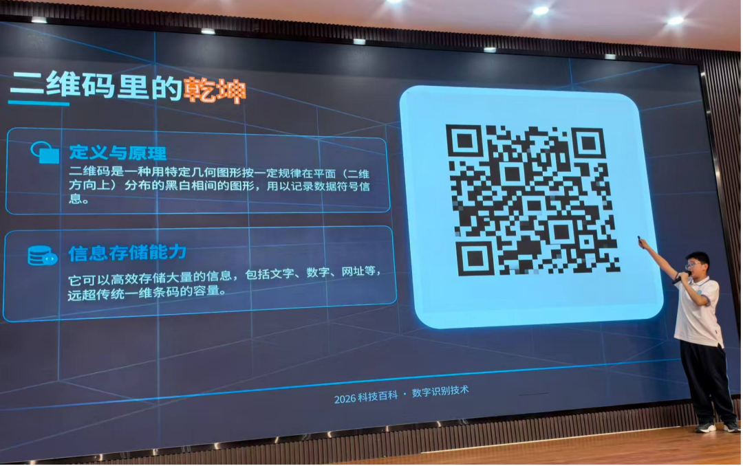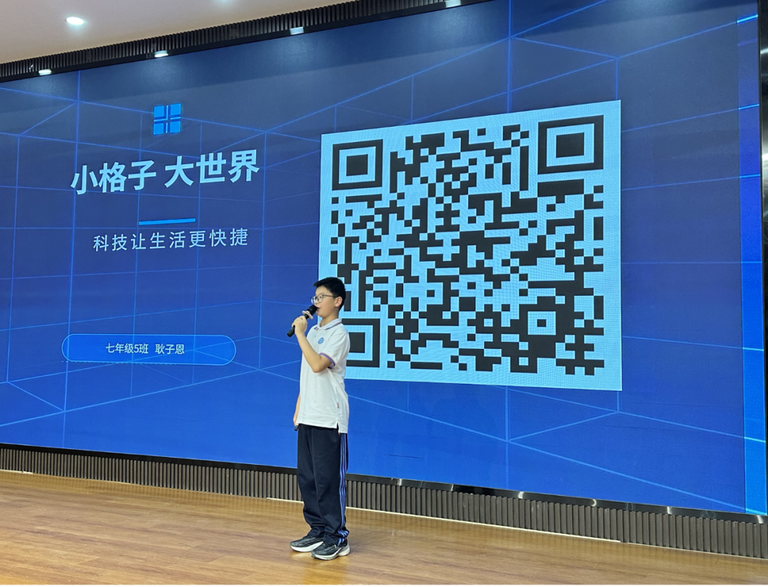 初一(5)班耿子恩同学揭秘二维码的知识,让大家认识到一个看似简单的黑白方框所蕴含的信息、智慧和给人们生活带来的便捷。