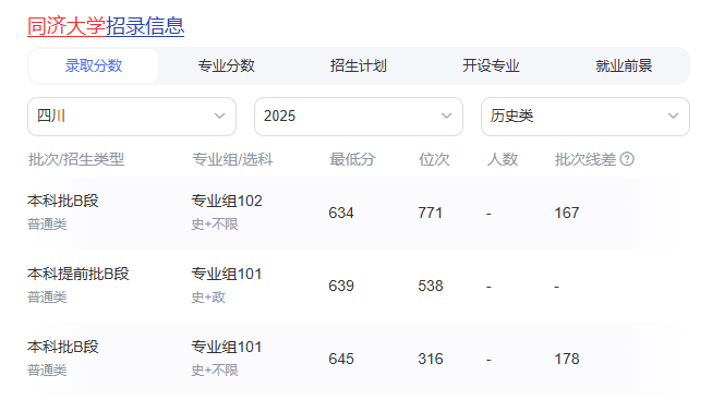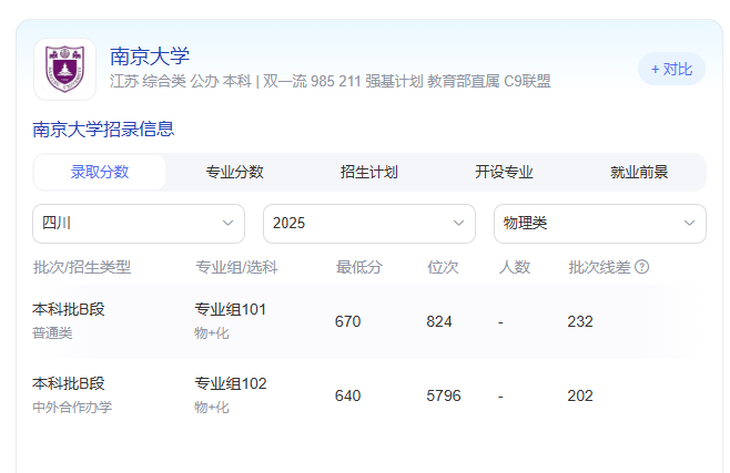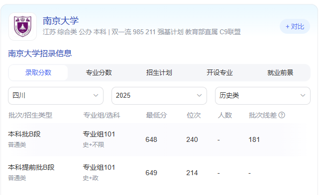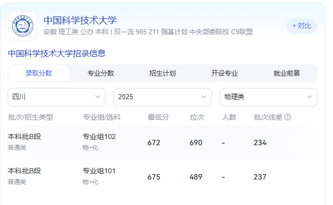 澳大利亚阿德莱德大学在2026年QS排名82位,悉尼科技大学在2026年QS排名96位,而排名在103位的南京大学、排名在132位的中国科学技术大学、排名在177位的同济大学2024年和2025年在四川省物理类和历史类录取分数如下图所示: