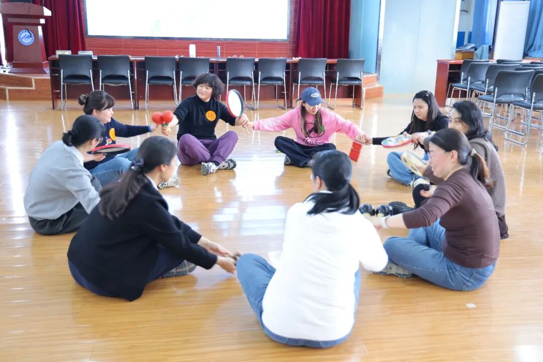 大家挑选好顺手的乐器,一开始是各自敲打着属于自己的心跳,慢慢地,杂乱的声音汇聚成了整齐又震撼的鼓点。那一刻,所有的烦恼似乎都被敲碎了,只剩下集体的共振和纯粹的开心。