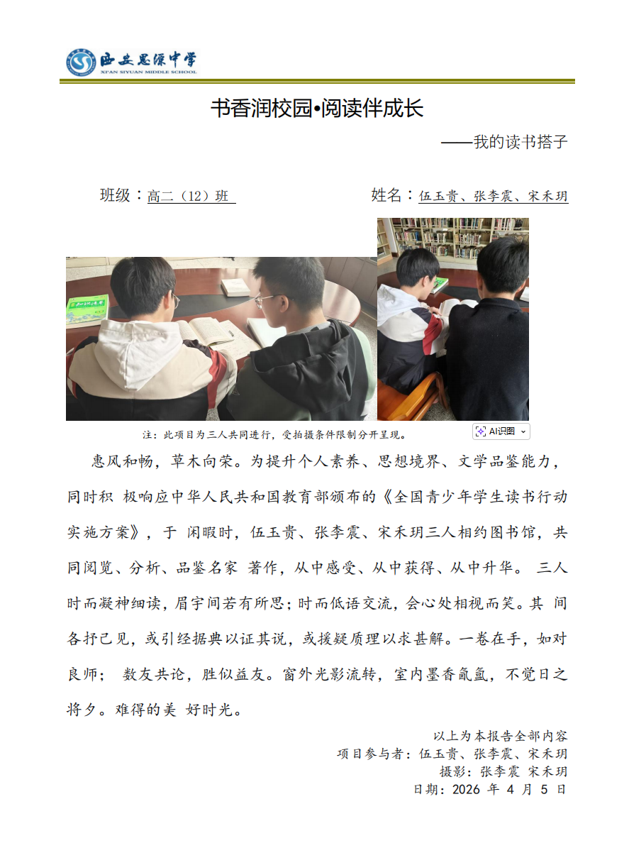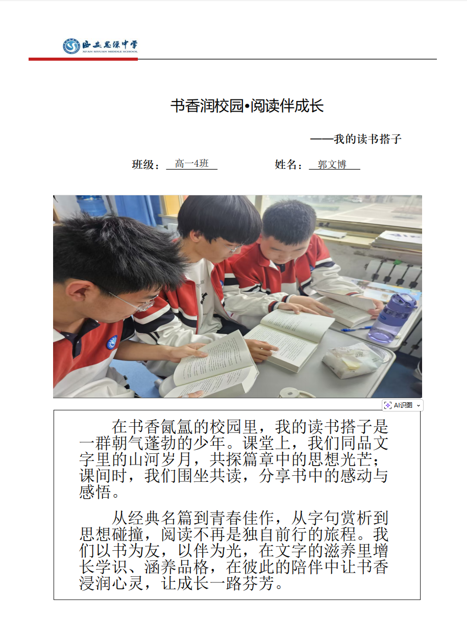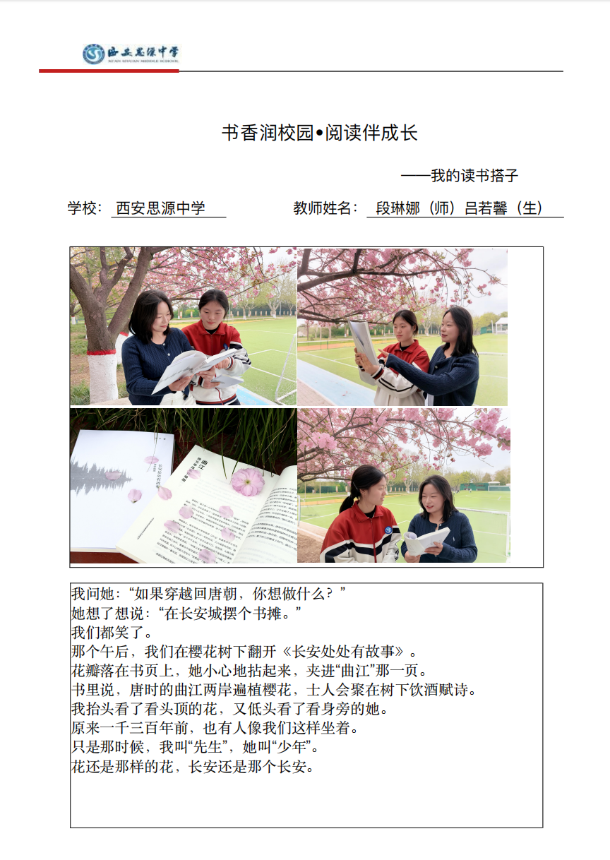 为进一步营造浓厚的校园书香氛围,丰富学生的精神文化生活,引导学生养成热爱阅读、坚持阅读的良好习惯,西安思源中学成功举办“书香润校园,阅读伴成长”——我的读书搭子主题活动。活动以“寻找读书搭子,共赴阅读之约”为核心,鼓励学生分享自己阅读路上的特殊伙伴,让阅读不再孤单,让成长充满书香。