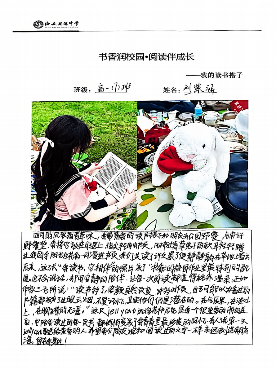 活动启动以来,得到了全体学生的积极响应和热情参与。同学们踊跃上交自己的“读书搭子”分享作品,讲述着自己与读书搭子之间的阅读故事,展现了多样的阅读场景和真挚的阅读情怀。令人惊喜的是,同学们的读书搭子各具特色,打破了传统认知,既有温暖的陪伴者,也有特别的“伙伴”,在文字和书本的罅隙中分享着阅读时光。