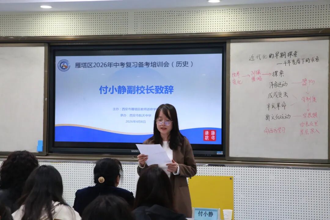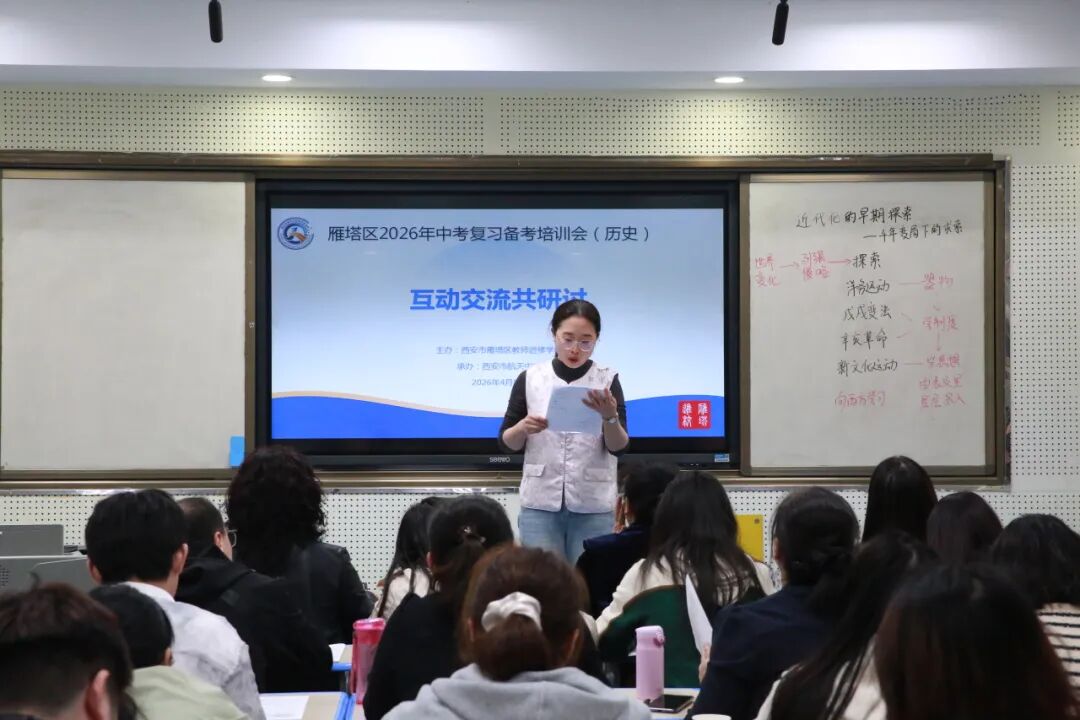 为精准把握中考历史命题方向,深化核心素养导向下的教学改革,提升初三历史复习备考效率,2026年4月8日,雁塔区中考历史复习备考研讨会在西安市航天中学顺利开展。来自全区各校的初三历史教师齐聚一堂,以课为媒、以研促教,共同探讨中考备考的有效路径与实践策略。