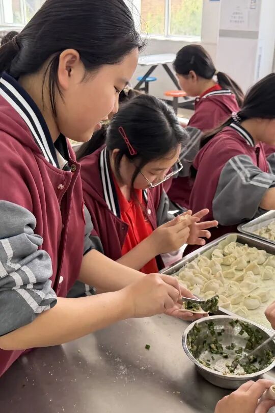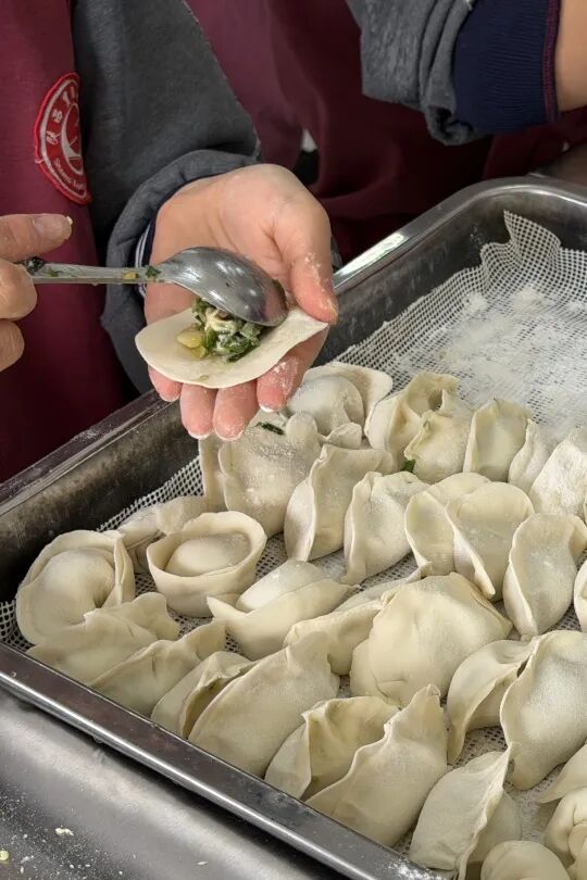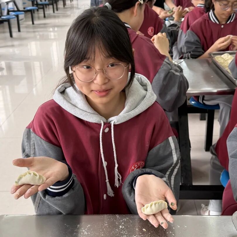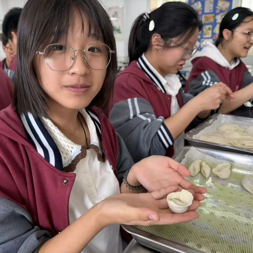 活动现场温馨而热烈,食材与工具准备就绪。在老师的示范与指导下,同学们分组动手、分工配合,从擀皮到包馅,从生疏到熟练,一个个饱满的饺子在指尖成型。大家互相帮助、彼此鼓励,欢声笑语里满是同窗情谊;班主任与家长代表耐心陪伴、悉心守护,用陪伴与关爱,为孩子们撑起一片温暖的成长空间。