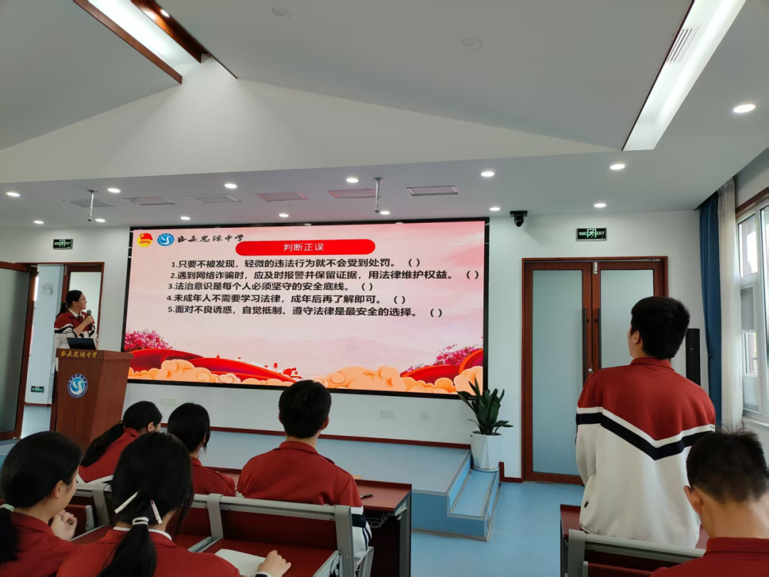 活动由高一年级团支部组织委员康紫涵主持。她以清晰的思路和通俗的语言,围绕“增强法治意识,远离不良风险”“学习消防知识,防范胜于救灾”“掌握应急技能,学会自我保护”三个核心角度展开详细讲解。她结合校园生活中的案例,引导团员青年认清不良风险的危害,掌握基本的安全防护方法。