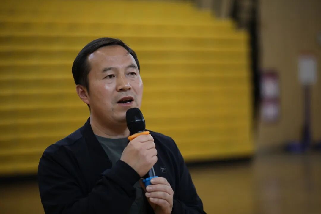 史建奎校长总结讲话,他赞扬了同学们比赛中展现的整齐的青春韵律和昂扬的团队精神,希望同学们继续深入落实“健康第一”生活理念,让运动成为青春成长路上最美的底色,让"身上有汗、眼中有光"成为青春最好的模样,以强健的身心为未来的筑梦逐梦、成长成才奠就坚实的基础!