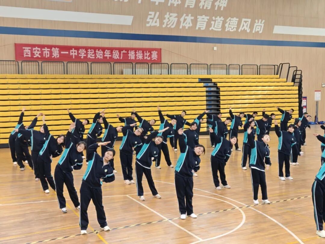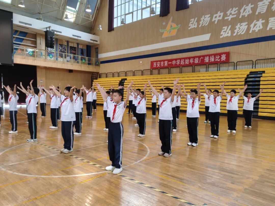 为深入贯彻落实“健康第一”教育理念,扎实推进阳光体育活动,丰富校园文化生活,培养集体荣誉感与组织纪律性,4月16日,西安市第一中学举行少41年级广播体操比赛。