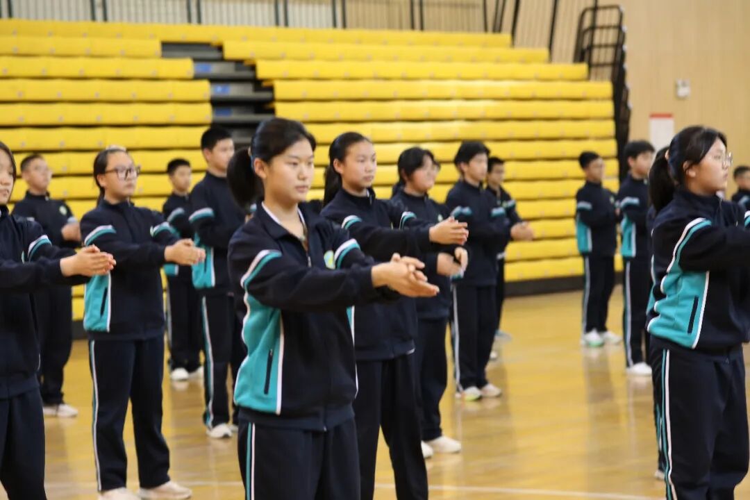 随着熟悉而激昂的广播体操音乐响起,比赛正式拉开帷幕。各参赛班级身着统一服装,步伐铿锵,口号响亮,依次列队步入赛场。从预备节到整理运动,同学们动作标准、舒展有力,抬头、挺胸、展臂、弯腰、跳跃等,动作与音律和谐统一,个体与集体整齐划一,力度、美感与青春朝气体现在每一个节拍和细节里,充分展现了同学们基础训练的扎实功底与团结协作的集体风采。