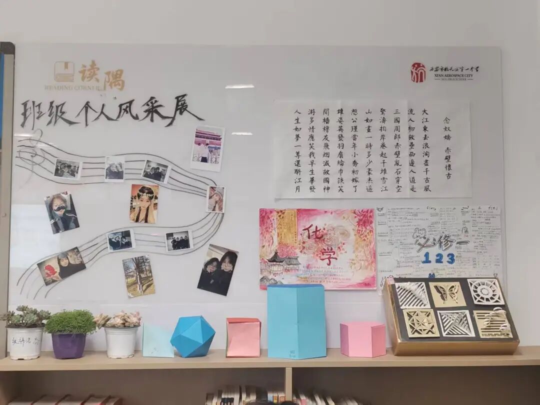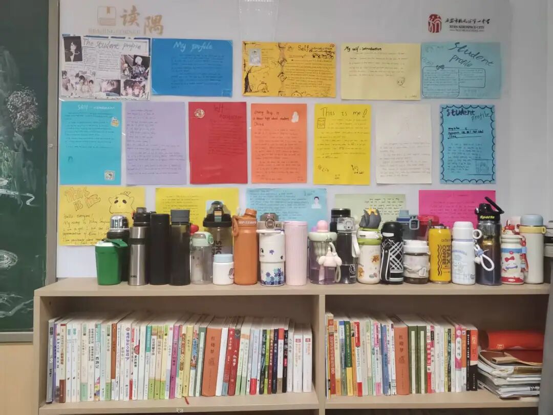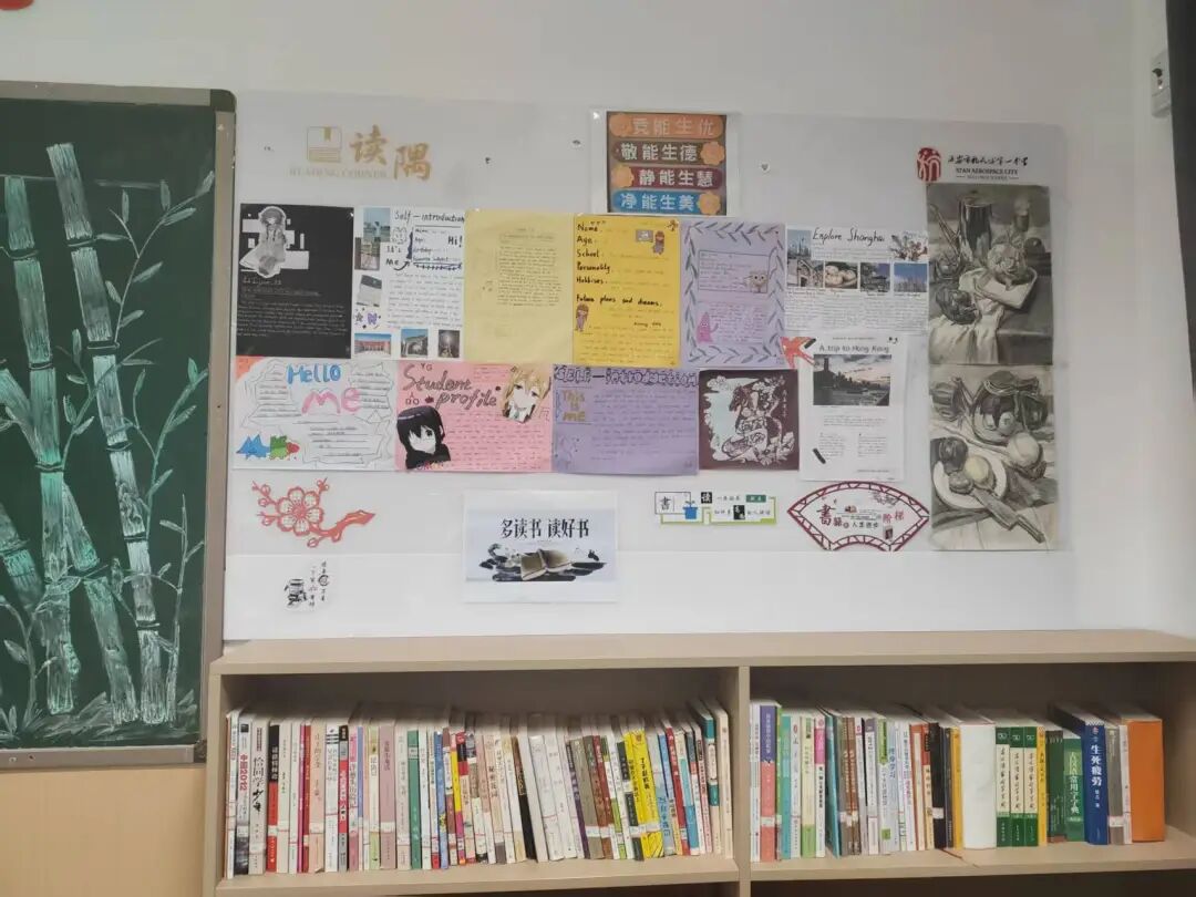 黑板报旁边,三排书架按“文学/科普/杂志”分类,最上面一层摆着全班投票选出的“本月书单推荐”,翻开任意一本,或许还能找到同学留下的便签书评。