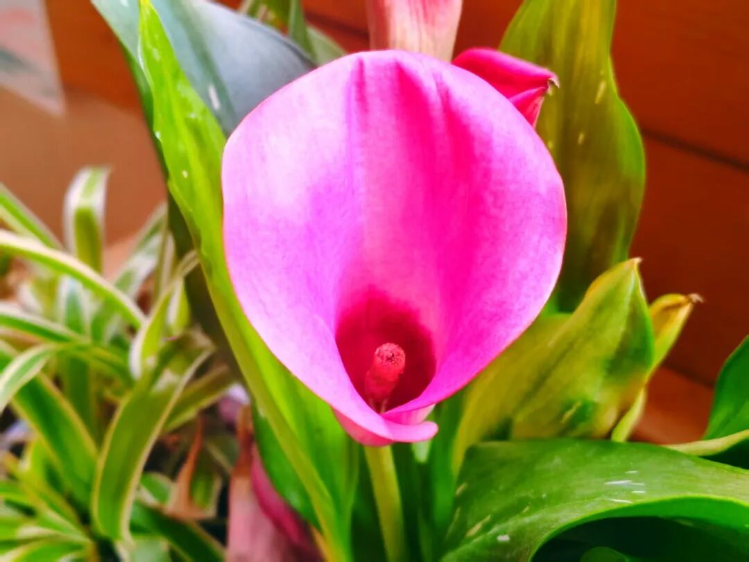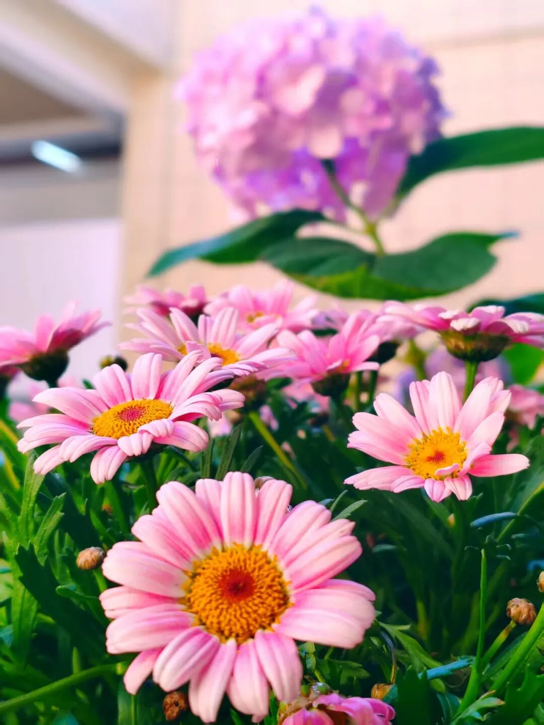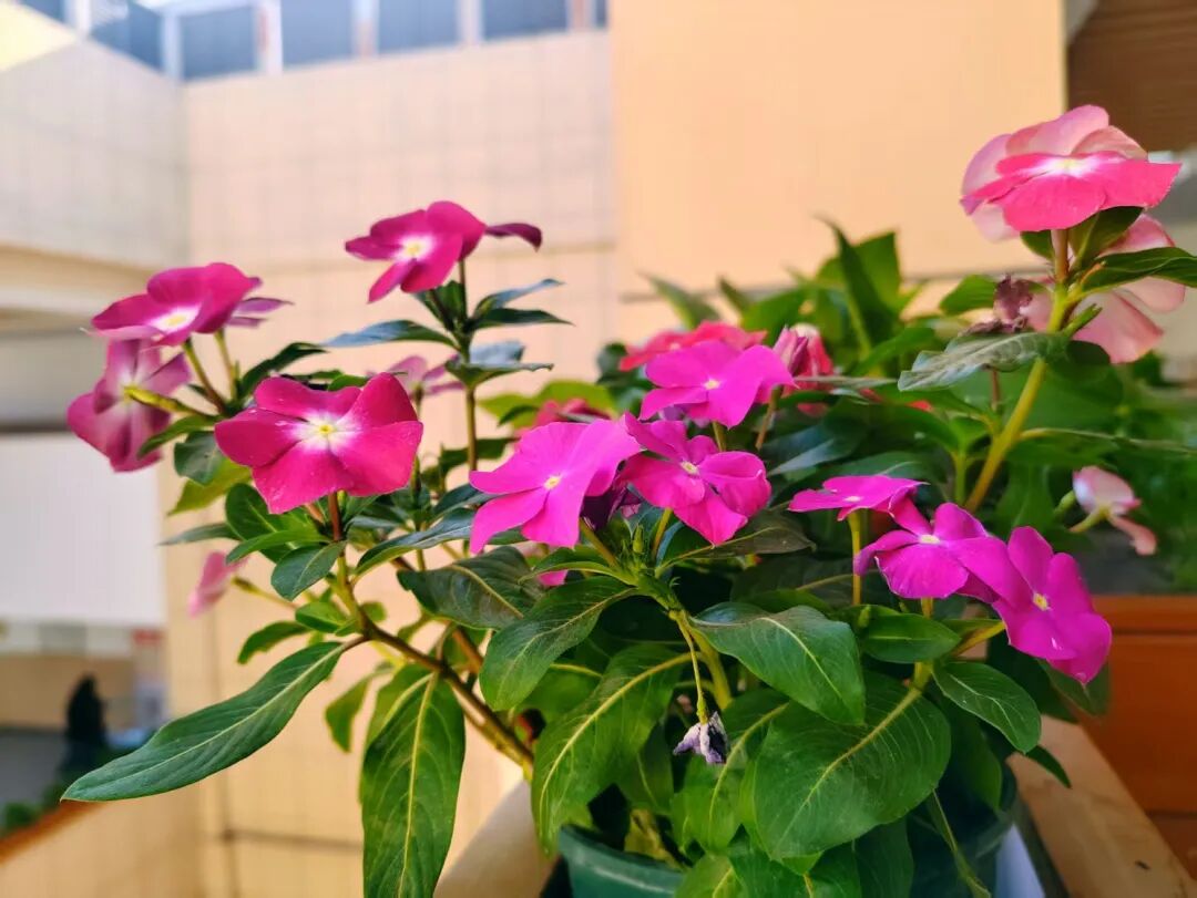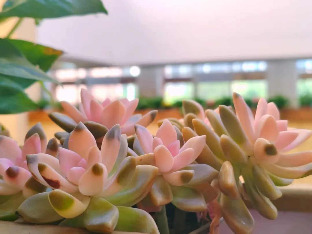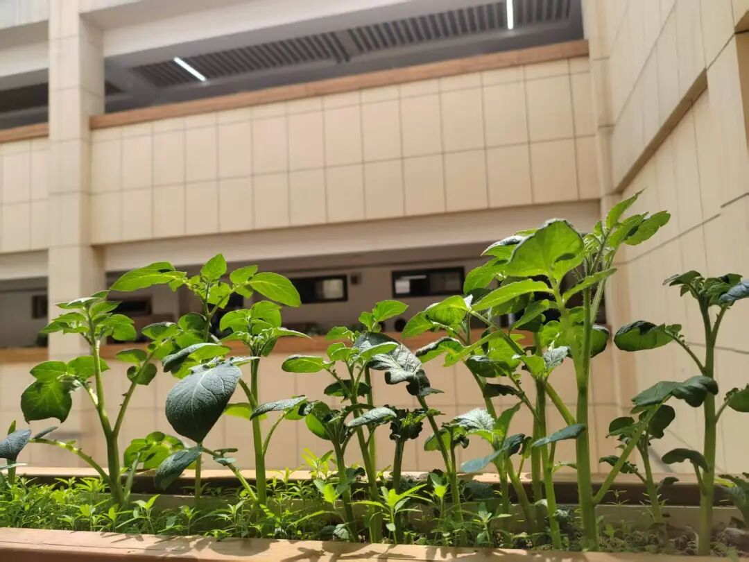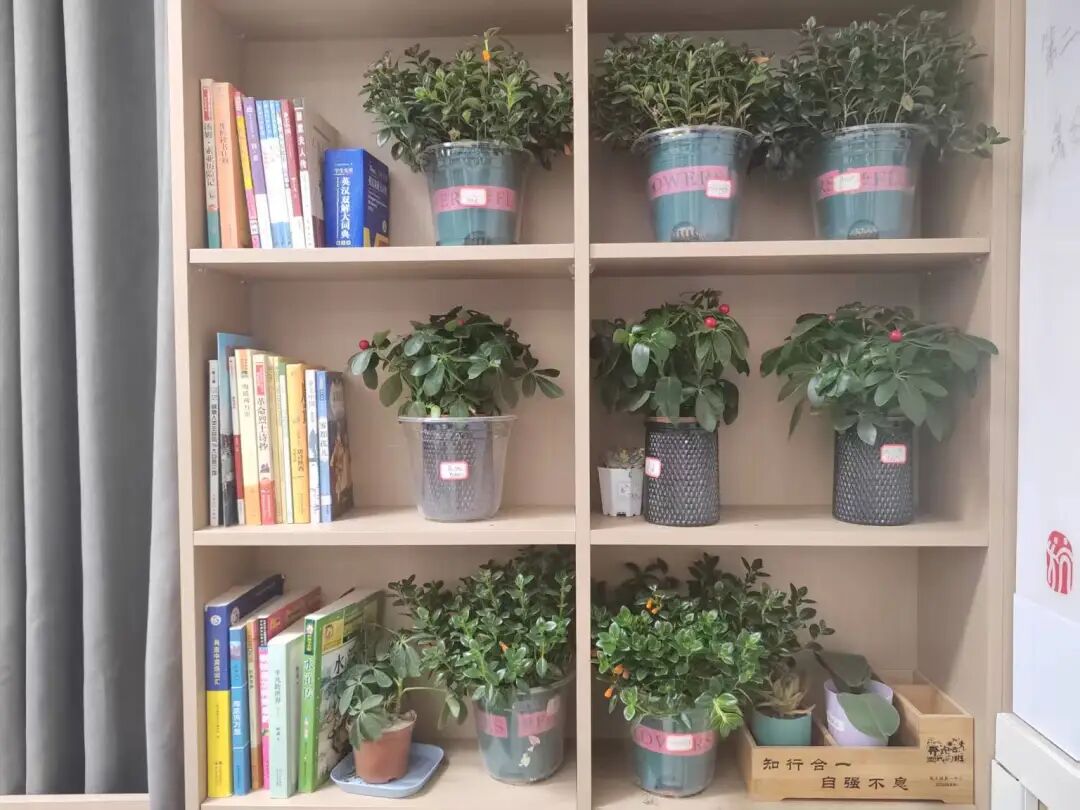 走廊绿植区一片生机盎然,各种花卉争相斗艳,风铃草、多肉、马蹄莲、紫色茉莉花、蝴蝶兰等错落有致,由“绿植守护员”轮流照料。