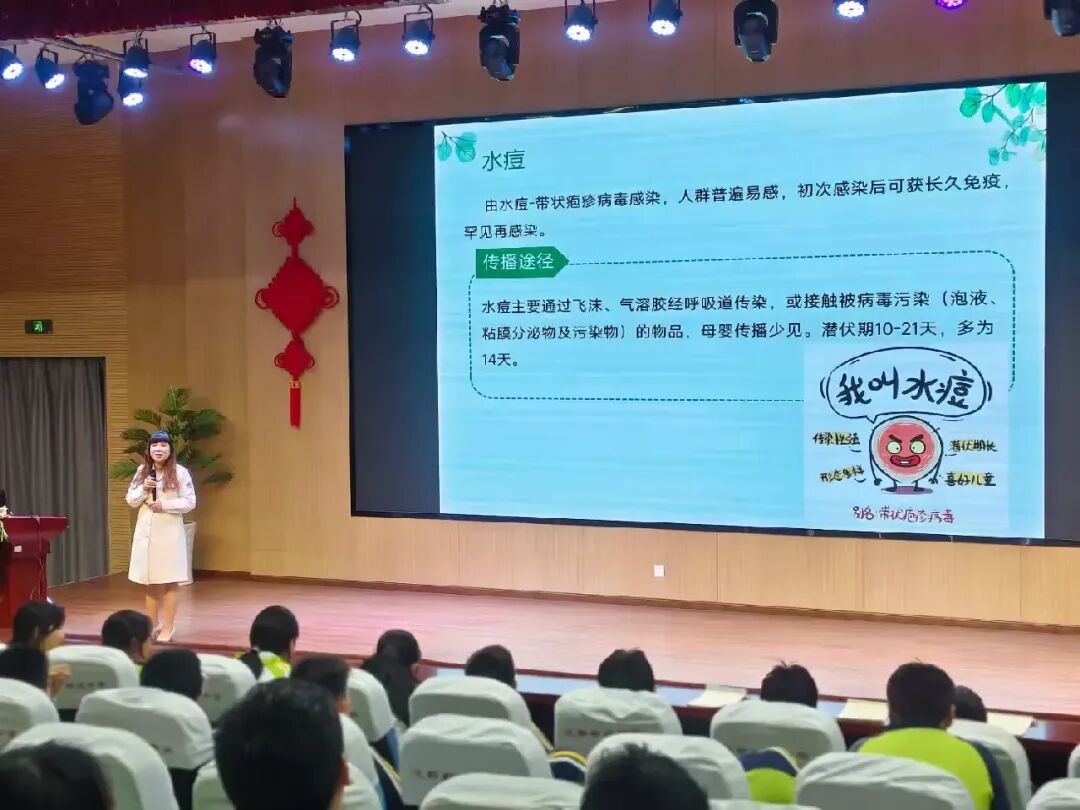 讲座第一部分由西航医院桂敏之主任讲解春季常见传染病防控,桂主任结合校园人群密集、学生易感的特点,重点讲解流感、诺如病毒、水痘、结核病四大高发传染病,从传播途径、典型症状、科学防控三方面细致拆解。用通俗语言、实景演示、互动教学,让健康知识入脑入心。