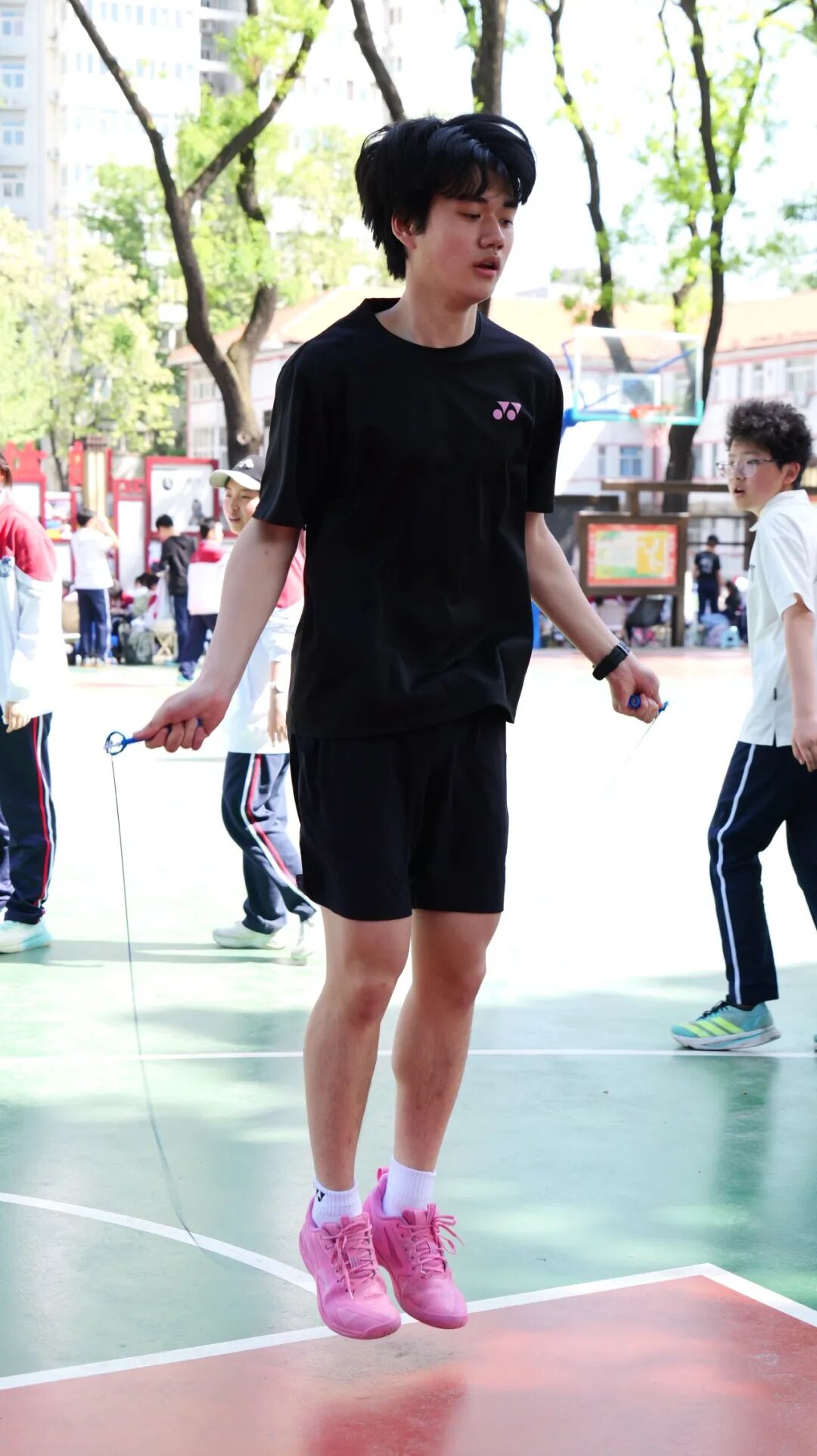 赛场内外,有一群默默奉献的身影,为运动会顺利进行筑牢保障。裁判员老师公平执裁、严谨细致,确保每一场比赛公正有序;后勤人员精心筹备、维护场地,保障赛事平稳推进;班主任全程陪伴、悉心鼓励,为同学们加油鼓劲;志愿者们穿梭忙碌,贴心服务、热情相助,成为赛场上最温暖的风景。