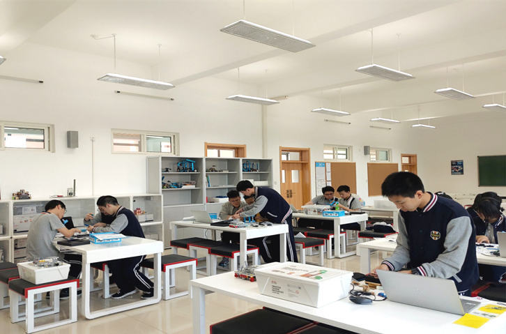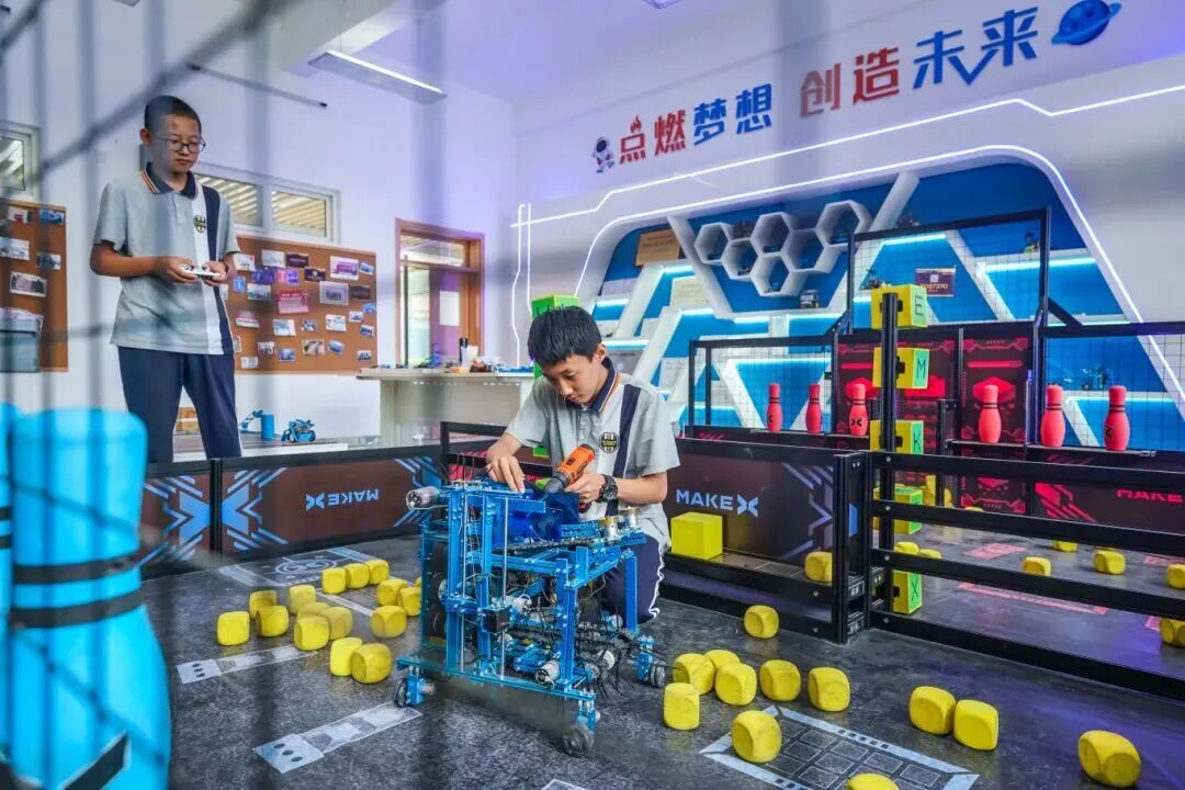 学校高度重视科创硬件建设,除配备功能完备的物化生实验室、数字实验室之外,还投入近千万元建成 800 余平方米青少年科学院,下设人工智能、脑科学、机器人、STEM、信息学、航空航模、通用技术七大研究中心。