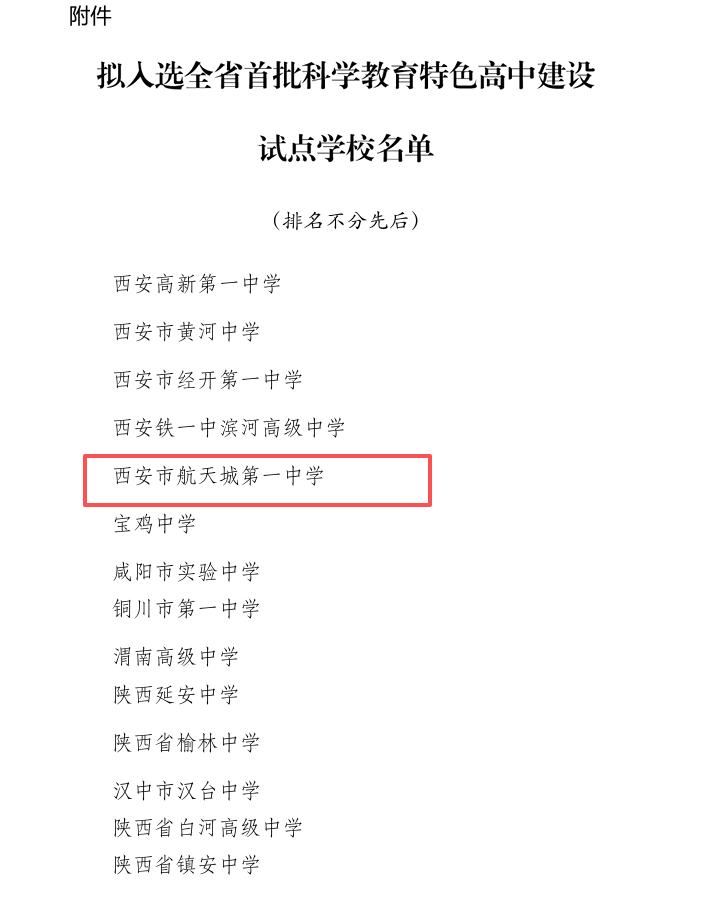 近日,喜讯传来!航天一中成功入选陕西省首批科学教育特色高中建设试点学校。这是对学校多年深耕科学教育、全力培育创新人才的高度认可,更是学校发展中具有里程碑意义的重大成果。