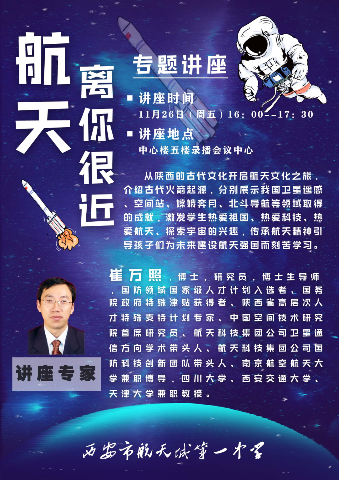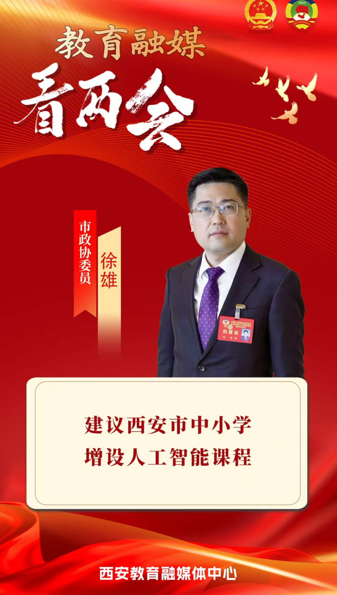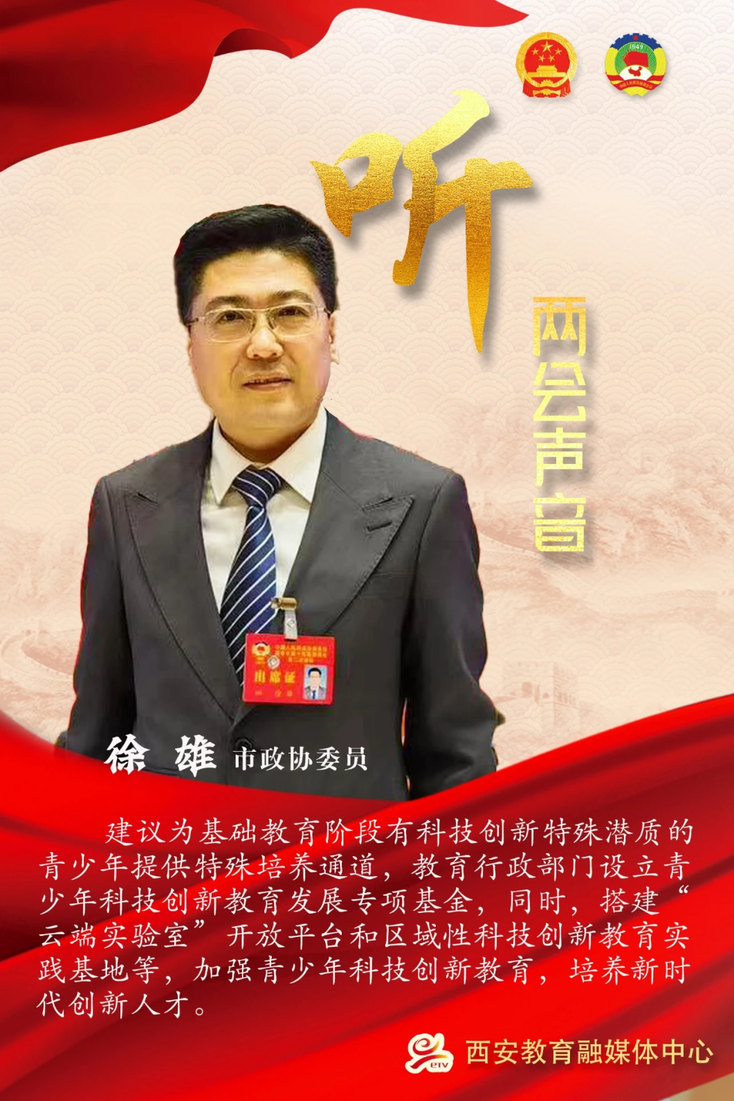 航天一中党支部书记、校长徐雄作为市政协委员,连续多年围绕科创人才培养、人工智能教育、科学教育体系建设等提交提案,相关建议被人民网、陕西政协网等权威媒体多次报道,社会影响广泛。