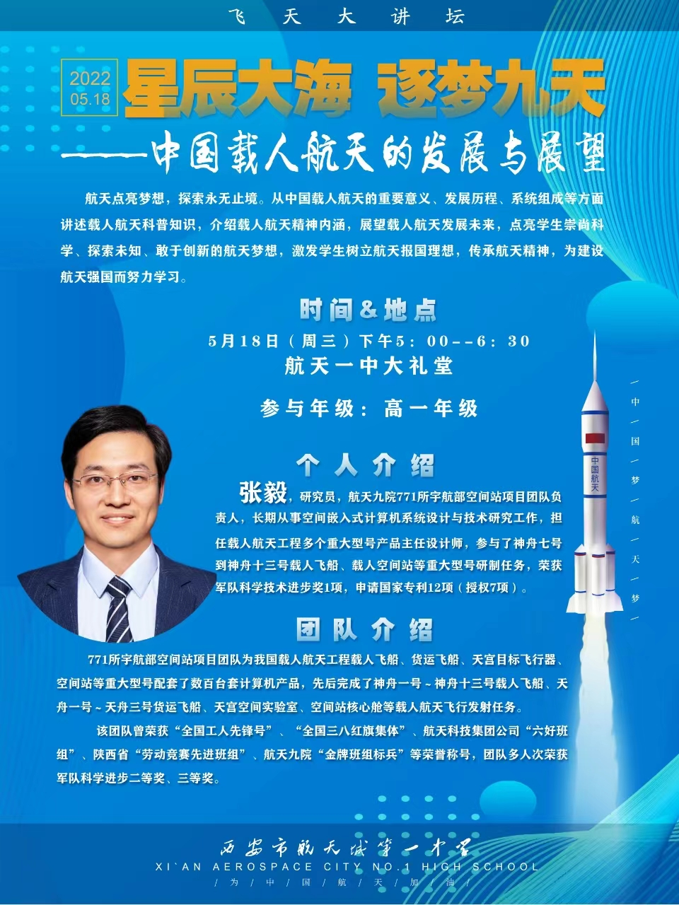 此次入选陕西省首批科学教育特色高中试点学校,既是一份荣誉,更是一份责任。未来,航天一中将以此次试点为契机,紧抓科学教育发展新机遇,进一步优化科学教育顶层设计,丰富科创教育载体,深化跨学科融合教学,强化师资队伍建设,充分发挥试点学校的示范引领作用,全力打造科学教育特色标杆,努力培养更多具备科学素养、创新思维、家国情怀的新时代青少年,为区域教育优质均衡发展和国家科技创新后备人才培育贡献航天一中力量!