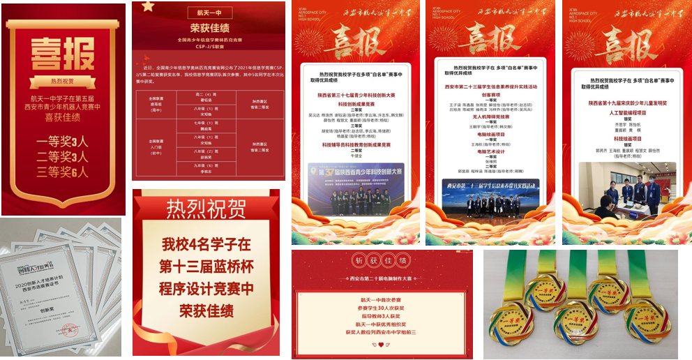 近年来,学校科学教育成果捷报频传:先后有 600 余名学生在教育部白名单赛事中斩获各级各类奖项,舒乐山等 3 名同学凭借扎实的学科功底,荣获学科奥赛省级一等奖,多项学生科创成果成功获得国家发明专利,参与创新人才培养计划的学生中,95% 以上文化课成绩稳居年级前列,实现了科创能力与学业成绩双提升。该培养计划已成为区域极具影响力的特色教育品牌,2025 年被正式列为航天基地教育局重点教育项目,有力推动了区域 “小初高” 一体化创新人才培养模式的探索与实践。