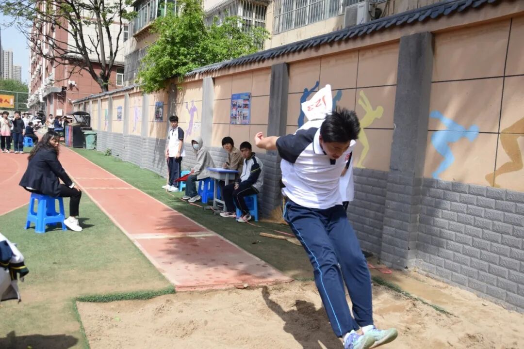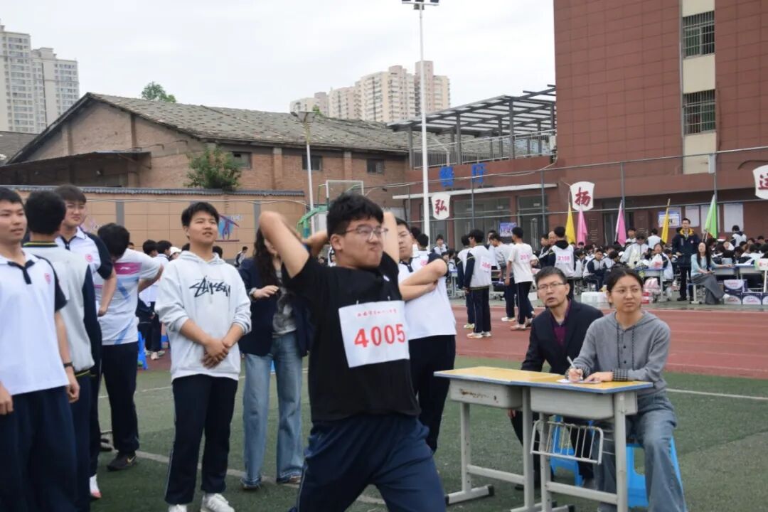 除田赛区域同样亮点十足:跳远沙坑旁,助跑、起跳、腾空、落地,动作行云流水,每一次沙坑上留下的脚印,都伴随着周围一阵惊叹;跳高垫前,选手们一次次向更高的横杆发起挑战,即使不慎碰掉杆子,也只是拍了拍身上的灰,转身就投入下一次助跑;投掷区域里,实心球在空中划出漂亮的抛物线,标枪带着风声扎向远处的草坪,候场的选手互相交流着发力技巧,刚结束比赛的同学顾不上擦汗,先给自己的同班伙伴呐喊助威。