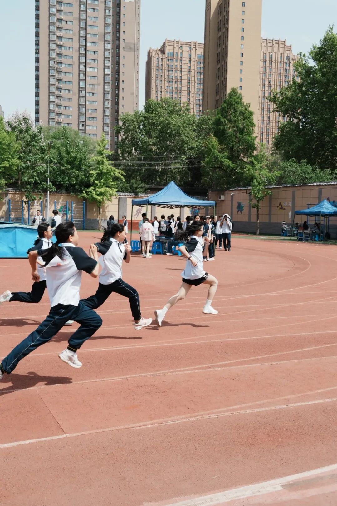 赛场之外,还有很多温暖的瞬间值得被记住:各个班级的大本营里,有人攥着写满加油稿的本子往广播台跑,有人拿着矿泉水和毛巾守在终点线,还有人精心准备了小奖状、小礼物,要送给每一位为班级出战的运动员;不少老师举着手机跑前跑后,记录着学生们的高光时刻;默默坚守的裁判员、后勤工作人员们,从场地布置、物资准备,到秩序维护、公平执裁,用细致与耐心撑起赛事的有序运转。正是这些藏在细节里的付出,让整场运动会既有热血的激情,更有暖心的温度。