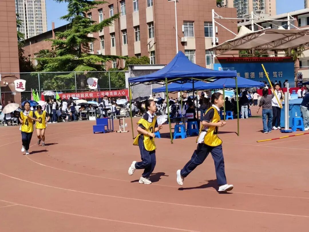 接力赛的现场更是扣人心弦,递棒的选手压低重心全力冲刺,接棒的同学侧身摆臂随时准备起跑,小小的接力棒在手中传递的,是整个班级的信任与期待。4×100m接力、60米迎面接力赛场,各班选手配合默契,每一次交接棒都牵起全场目光,冲线时刻更是点燃全场热情,不少班级的啦啦队甚至跟着选手一起沿着跑道边跑边加油。