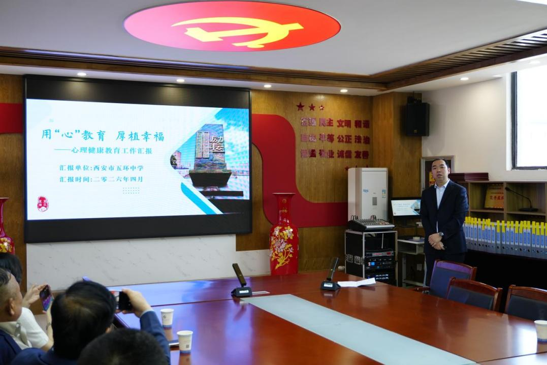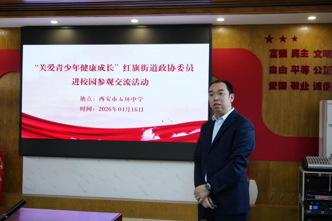 2026年4月16日下午,西安市灞桥区政协委员红旗街办学习组及相关领导一行人走进西安市五环中学,开展专题调研与参观交流活动。本次调研聚焦中学生心理健康教育与优化到校时间落实情况,通过实地走访、亲身体验与座谈交流,深入了解学校在育人实践中的创新举措与特色发展。