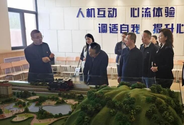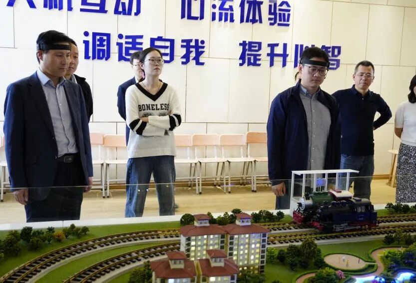 在心理健康教育专题调研环节,郑书记首先带领调研组参观了设施完善、功能齐备的“学生发展指导中心”(心理教育中心),亲身体验了情绪宣泄、身心放松、认知训练、沙盘游戏等专业心理项目。随后,德育处主任李良向委员们系统介绍了学校心理教育的科学机制与常态化开展情况。调研组对学校在心理健康教育方面的高度重视、特色发展、显著成效给予了充分肯定。