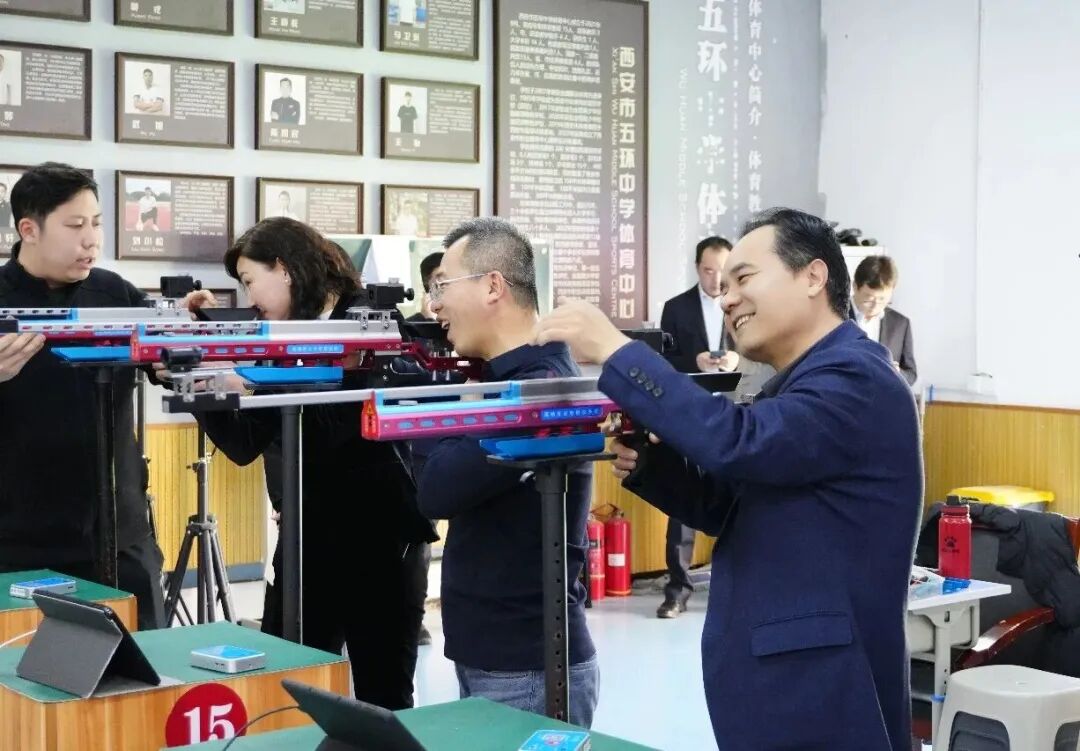 随后,委员们参观了学校特色场馆——射击馆,亲身体验射击运动的魅力,并对学校近年来在射击项目上取得的国家级、省市级优异成绩表示热烈祝贺。学校把体育特色与文化育人相结合的发展路径,得到了调研组的一致认可。