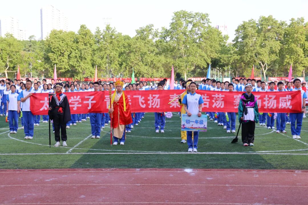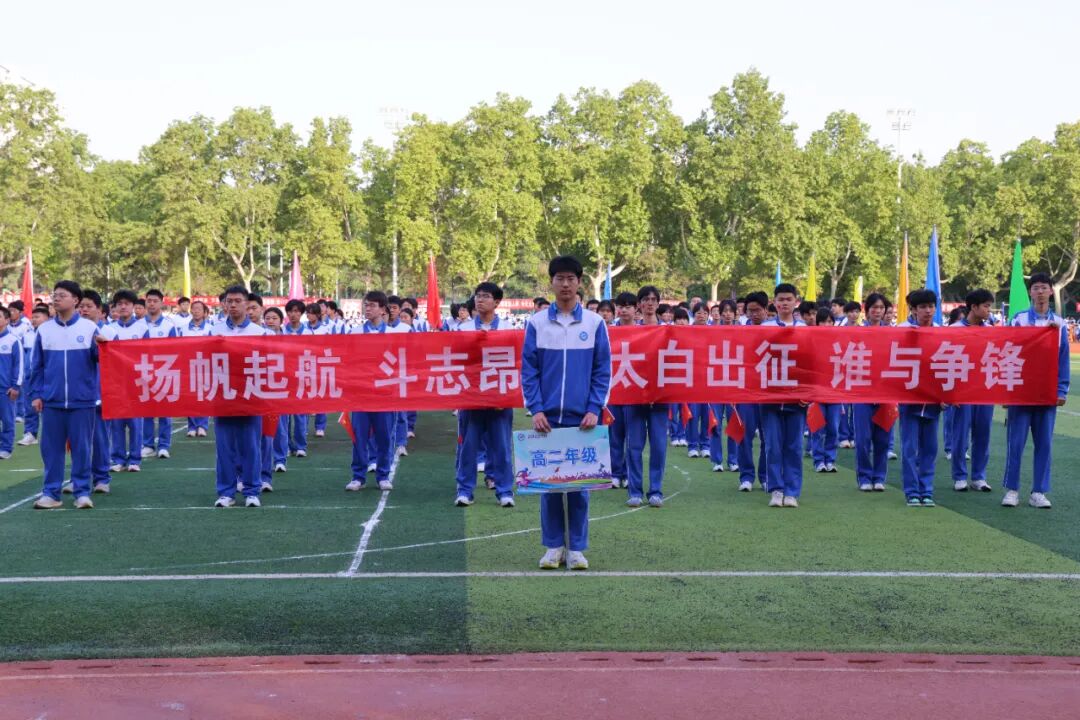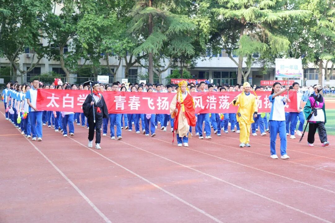 各年级运动员方阵阔步走来:小学部学生的稚气未脱与眼神坚毅奇妙融合;初一年级同心同向,犹如破土新苗;初二年级的呐喊震天,似矫健雄鹰蓄势待发;高一、高二年级则带着“谁与争锋”的霸气,将少年的意气风发展现得淋漓尽致。这不仅仅是一次入场,更是太白学子精神的流动雕塑。