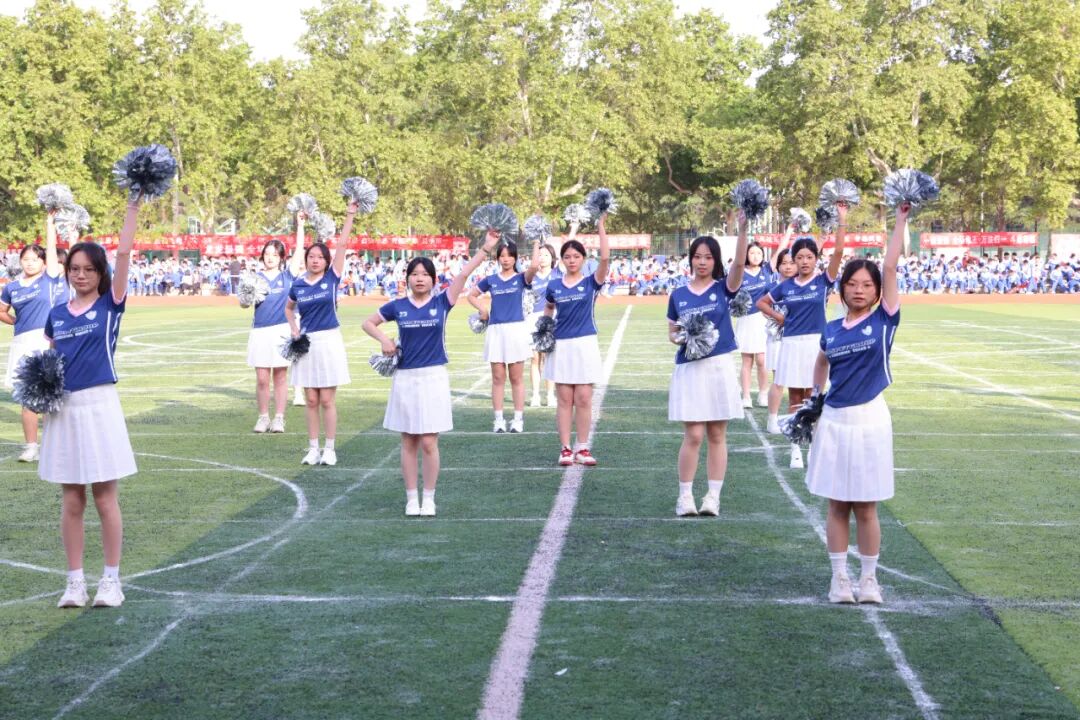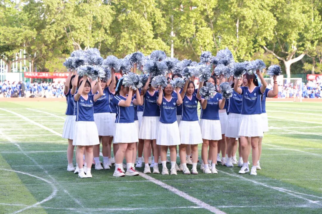 压轴出场的高一、高二年级啦啦操瞬间点燃了全场的沸点。绚丽的服装、轻盈的舞步、整齐的动作,少女们在阳光下用活力驱散疲惫,用激情鼓舞士气,将开幕式推向了最高潮。