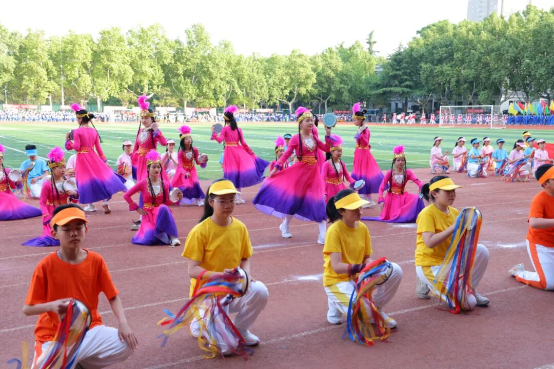 小学部四、五年级带来团体操《手绽繁花》,整个操场瞬间被温柔与灿烂包裹。孩子们伴着欢快的节拍翩翩起舞,每一个动作都充满朝气,每一张笑脸都饱含深情。那是太白校园里最美的春景,也是童心向祖国的深情告白。