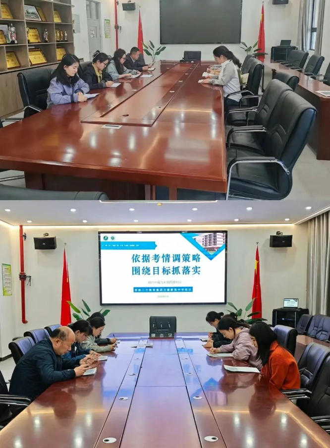 为精准研判九年级考试学情,找准教学短板,明晰备考方向,切实提升复习备考效率,全力冲刺中考,近日,西航二中教育集团汉都新苑中学九年级组召开九年阶段质量检测班科会。学校跟班领导、九年级全体班主任及各科任教师齐聚一堂,共析学情、共谋策略,会议有序开展。