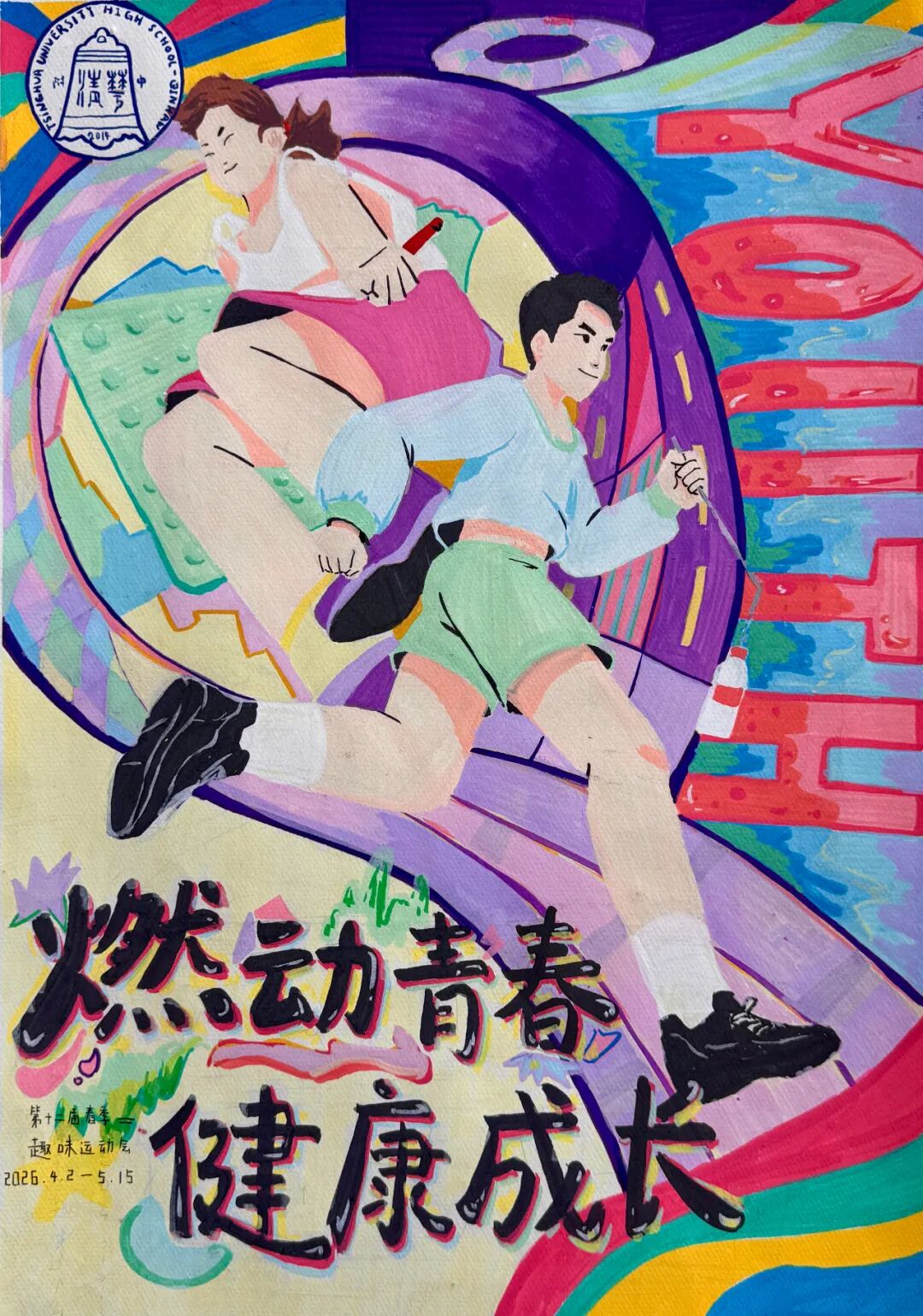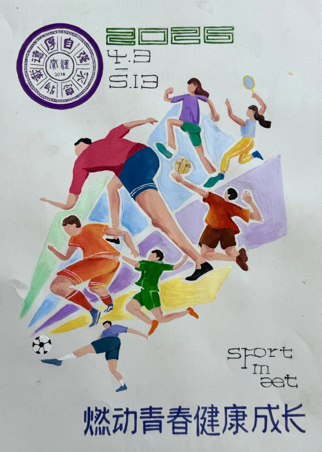 为营造浓厚体育节氛围,展现学子创意与艺术素养,陕西省西咸新区秦汉中学第十二届体育节手绘海报大赛评选结果揭晓。本次大赛以燃动青春,健康成长为主题,全校初高中学生积极参与、精心创作,用色彩与线条诠释体育精神,用创意与匠心展现青春风采。