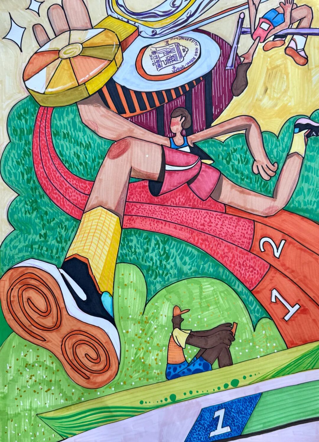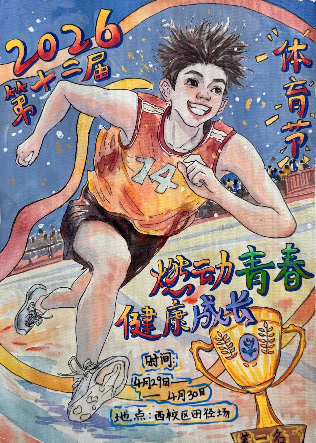 本次作品征集完成后,由学校体育节组委会、宣传组及美术教师组成专业评审团,严格按照主题契合度、创意设计、绘画技法、内容积极度四大维度公平、公正、公开评审,最终评选出初中组、高中组各奖项,并授予优秀组织班级。获奖作品紧扣体育节赛事与精神内涵,构图新颖、色彩明快、动感十足,充分展现了秦汉学子朝气蓬勃、奋勇拼搏的精神面貌。优秀作品将在体育节开幕式、校园主干道及赛场周边集中展示,成为校园里一道亮丽的风景线。