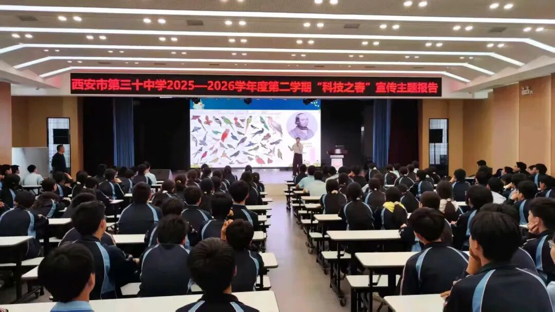 春风送暖,科技启航。为弘扬科学精神,普及科学知识,激发学生的创新热情与探索精神,2026年4月17日,西安市第三十中学举行2025-2026学年度第二学期“科技之春”宣传主题报告会。