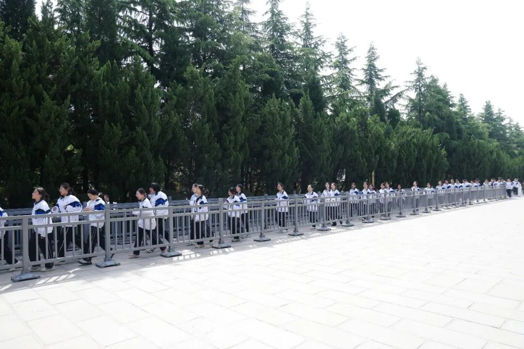 习仲勋陵园内松柏苍翠、静谧安然。全体师生整齐列队,举行拜谒仪式。师生们肃立默哀,向习仲勋同志石刻座像敬献鲜花,表达对革命先辈的崇高敬意与深切缅怀。