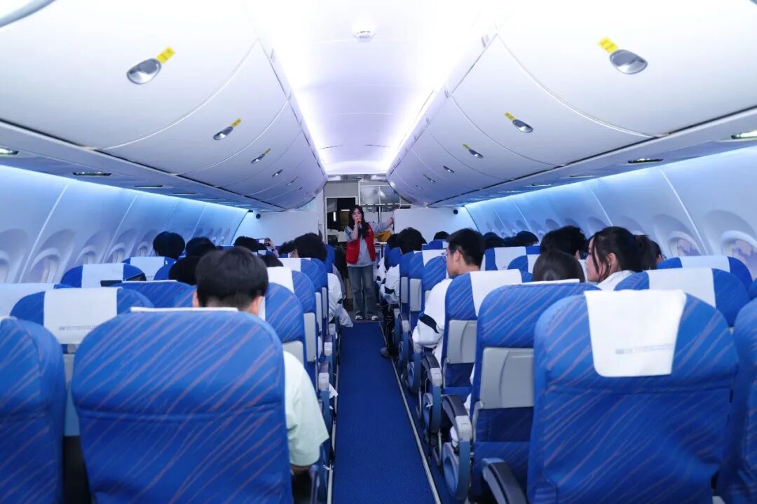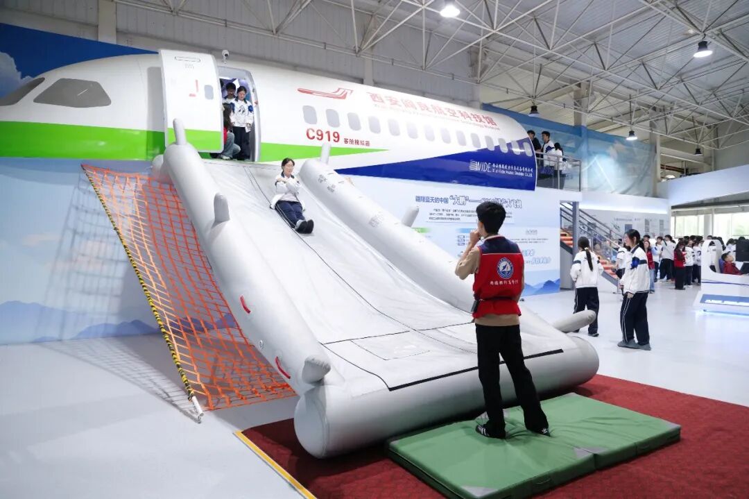 在C919模拟机舱,同学们学习客舱设备使用、应急出口识别及逃生路径规划,增强了安全意识与应急决策能力。随后的滑梯逃生演练将知识转化为实践,锻炼了心理素质与团队协作,提升了应急反应与实战信心。模拟飞行环节,同学们手握操纵杆,在蓝天白云间穿梭翱翔,抽象的航空知识变得生动具体,极大激发了学习兴趣与探索欲。