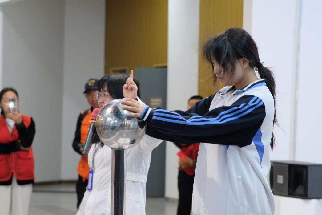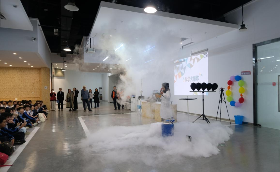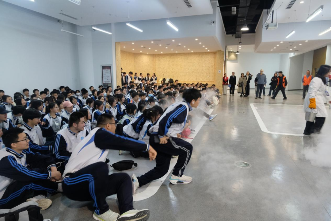 在实验演示环节,现场爆炸演示将气氛推向高潮,震撼的视觉效果与精准的科学控制形成强烈对比,同学们在惊叹中思考,在感动中理解:科学不只是公式,而是可以被感知、被体验、被操控的力量。