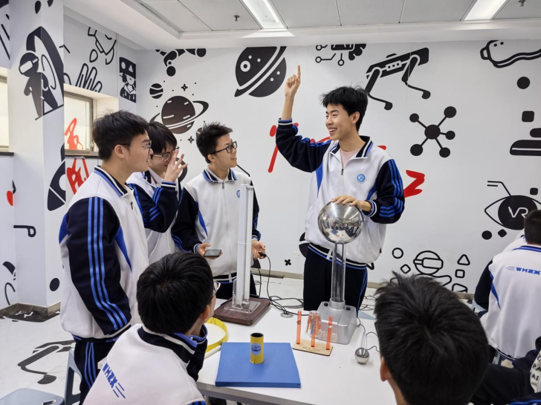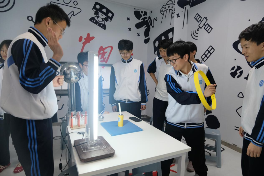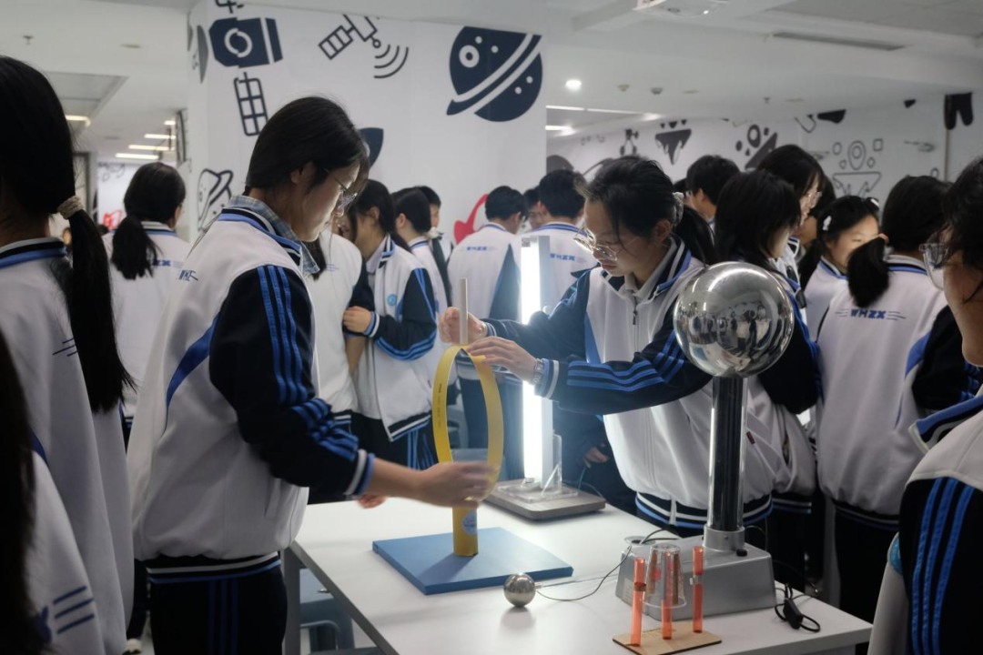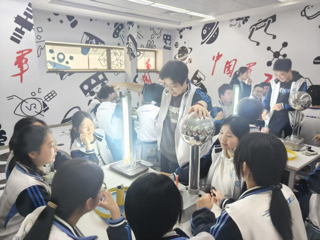 实验室里,抽象的科学原理变得触手可及。同学们通过模拟实验与互动装置,探究军工装备背后的基础科学——力学原理、能量转化、材料性能……在操作与观察中,逐渐建立起科学认知的框架,明白了每一件“国之重器”,都是严谨科学逻辑之上的再创造、新发明。