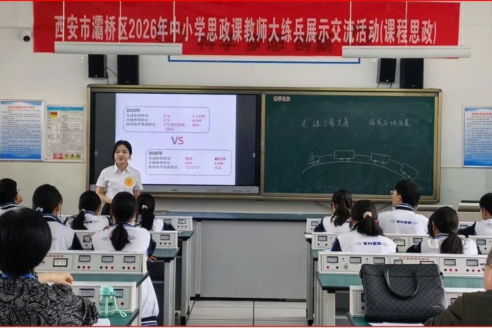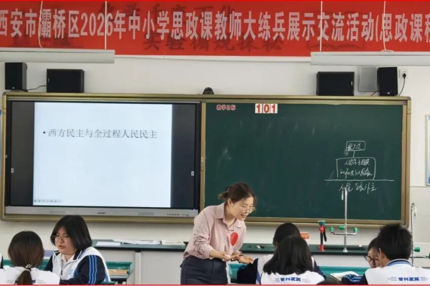 为深入贯彻党的二十大、二十届历次全会及全国学校思想政治理论课教师座谈会精神,落实立德树人根本任务,扎实推进区域思政课教学改革创新、课程思政目标的高效实现及教师专业能力提升,2026年4月27日,由西安市灞桥区教育局组织、西安市五环中学承办的2026年中小学思政课教师“大练兵”展示交流高中组比赛活动圆满落幕。