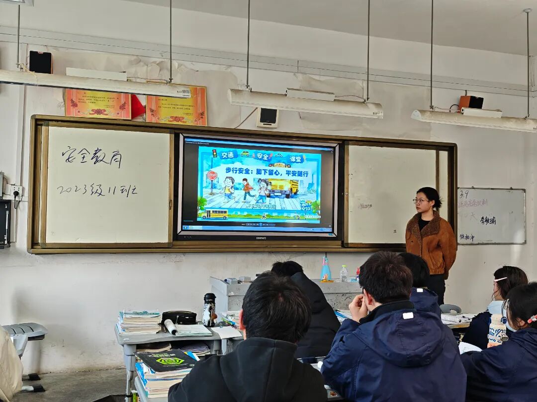 成立了以校长李东京为组长的专项领导小组,政教处牵头、安保科和各年级协同,联合区交警大队,系统策划主题班会、展板宣传、交警宣讲、文明劝导、家校座谈等活动,构建“学生—家庭—社会”三位一体安全教育格局。