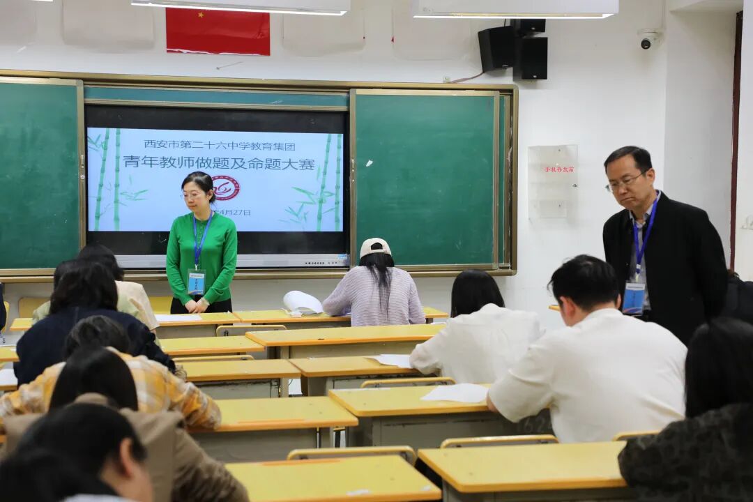 春风化雨育桃李,研思砺行筑匠心。为进一步锤炼青年教师专业素养,夯实教学基本功,提升学科问题解决能力和学科命题能力,推动学校教育教学高质量发展,4月27日晚,西安市第二十六中学教育集团青年教师做题及命题大赛在建国路校区如期举行。